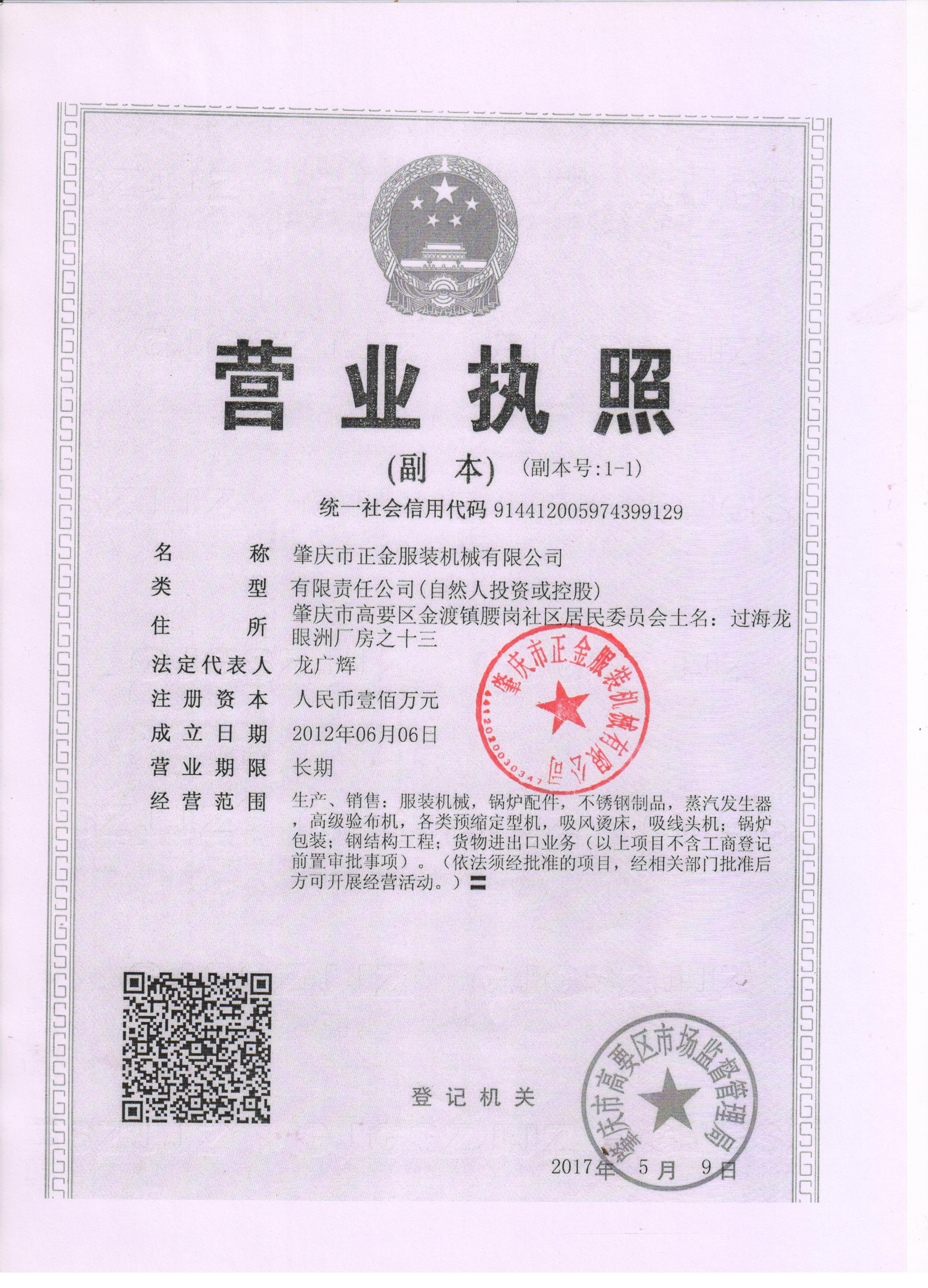 肇庆市正金服装机械有限公司
